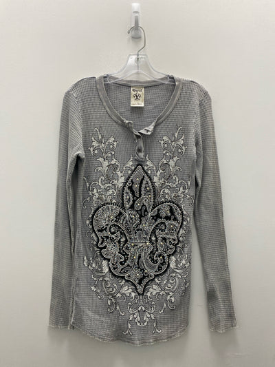 Vocal Size L Gray Black/White Fleur de lis Ladies Top