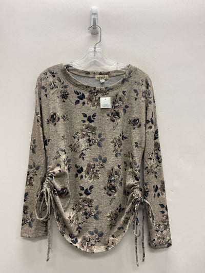 One World Size S Taupe Blue/Gray Floral Ladies Sweater