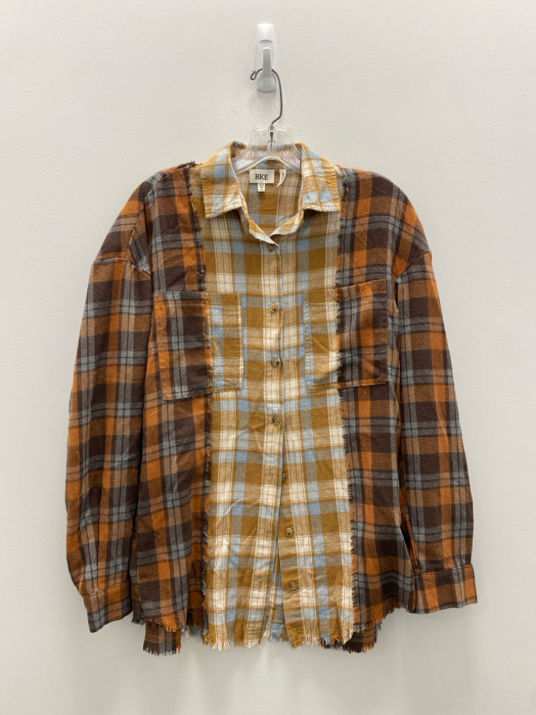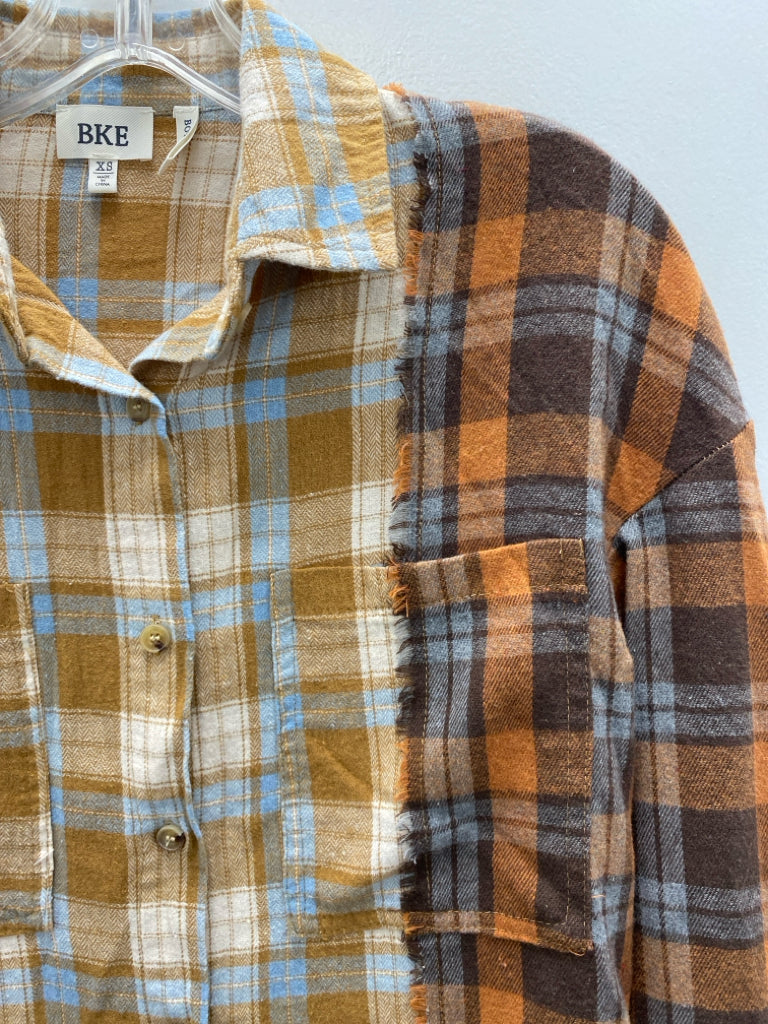 BKE Size XS Brown Tan/blue Plaid Ladies Top