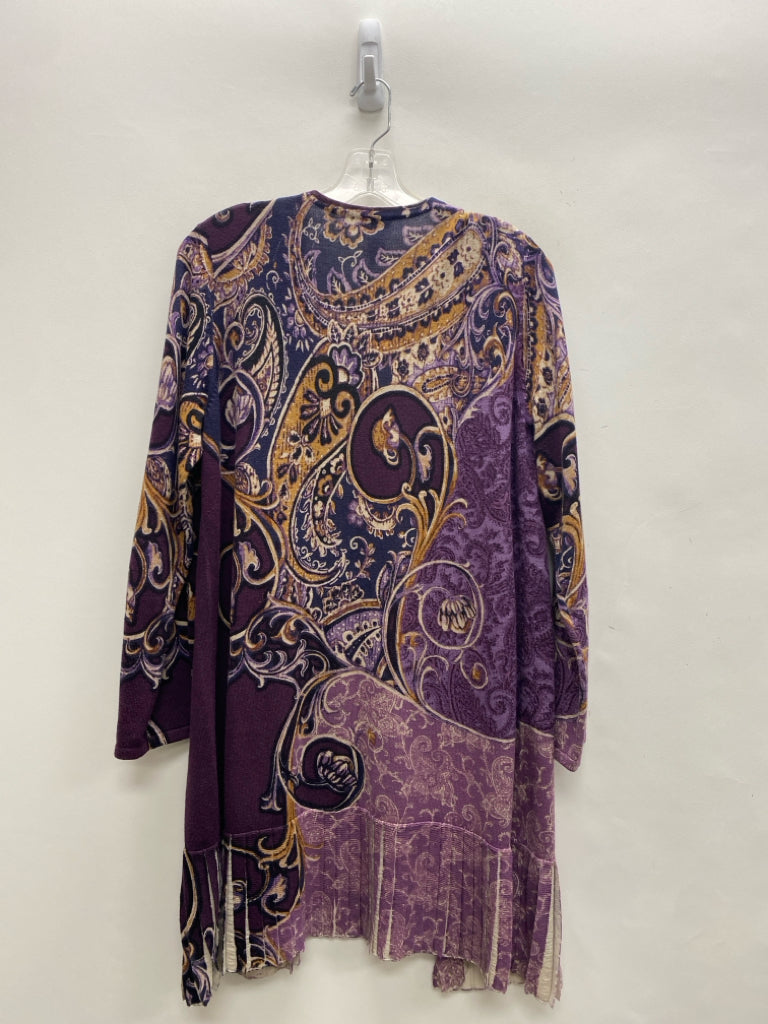 Chico's Size 2 Purple Navy/Lavender Print Drape Ladies Sweater
