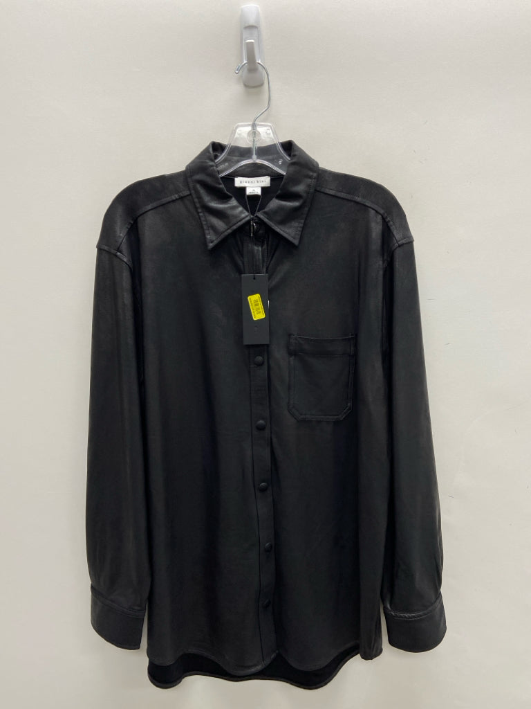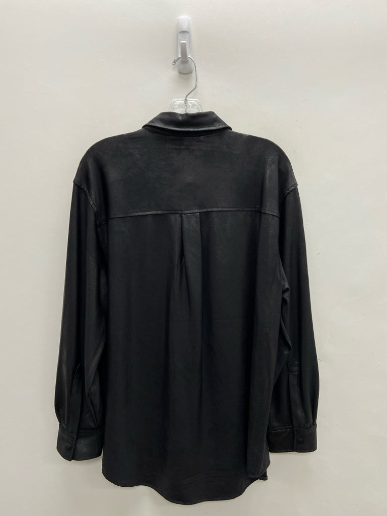 Gianni Bini Size M Black Button Up Faux Leather Ladies Top
