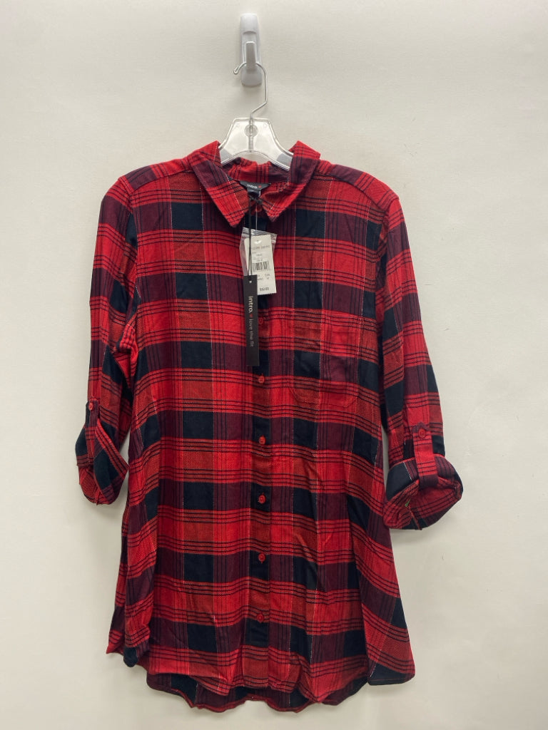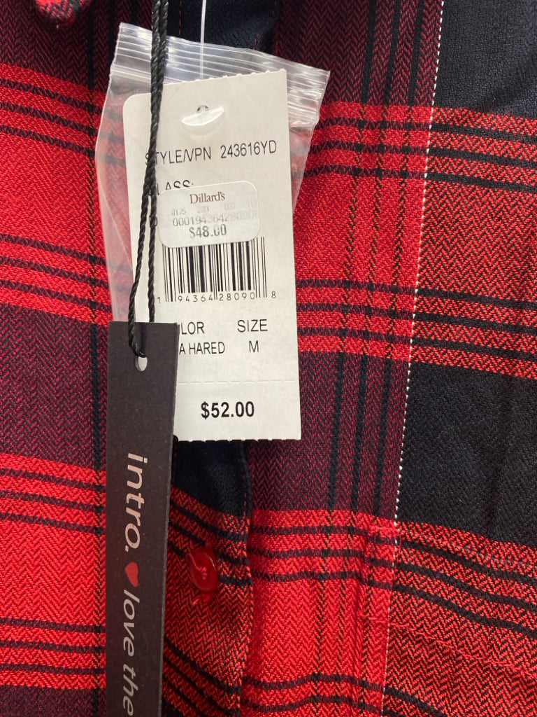 intro. Size M Red Black Plaid Button Up Ladies Top