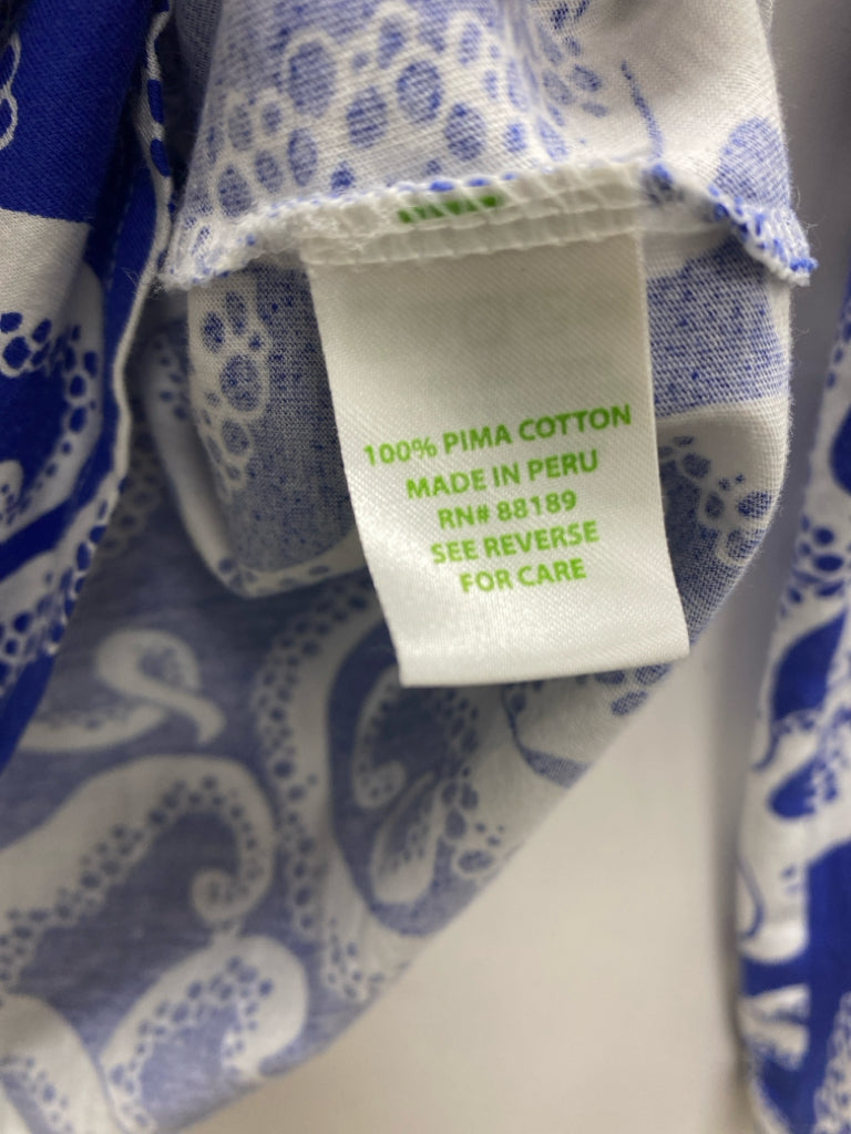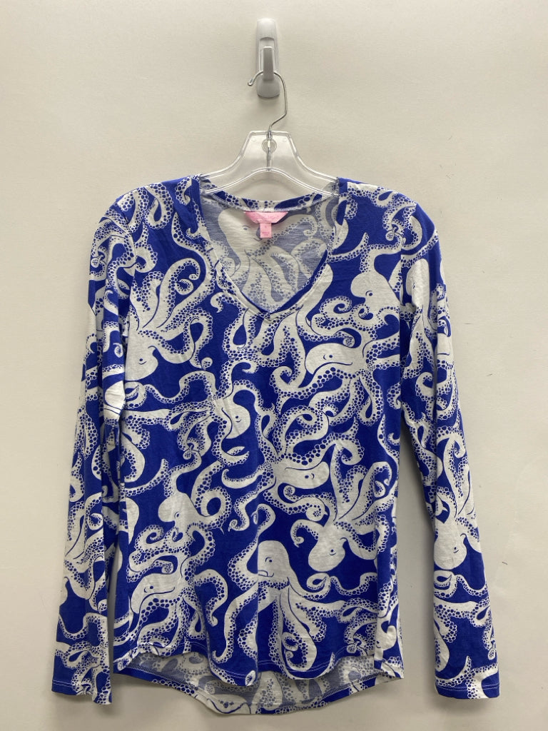 LILLY PULITZER Size S Blue White Octopus V Neck Ladies Top