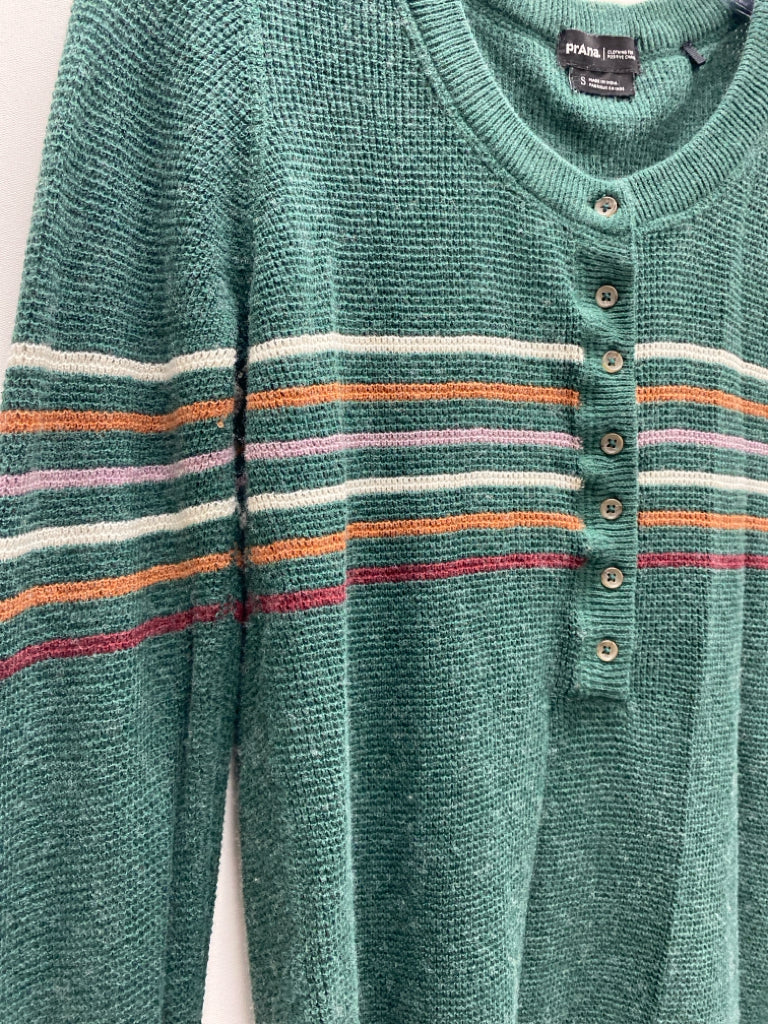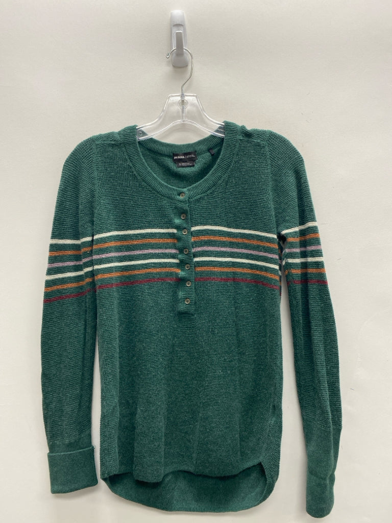PrAna Size S Green Cream/Brown Striped Ladies Top