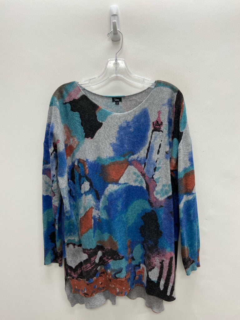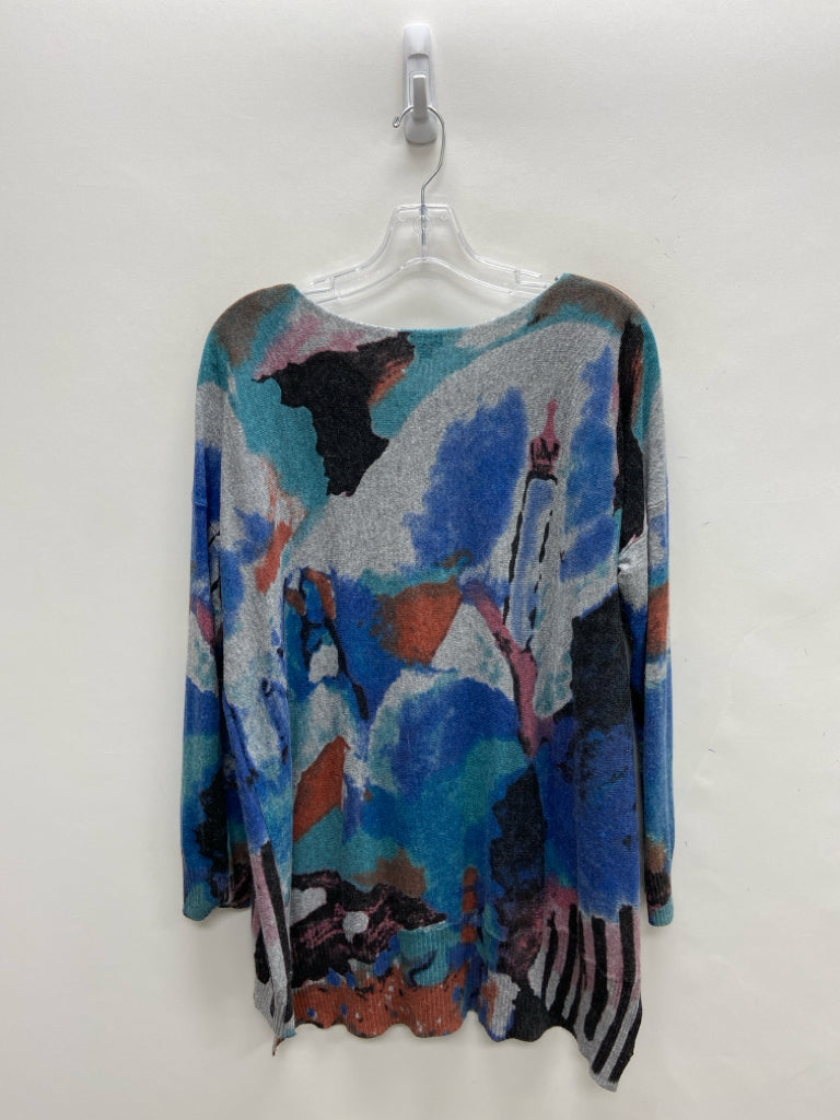 Size L Gray/Blue Aqua/Coral Abstract Ladies Sweater
