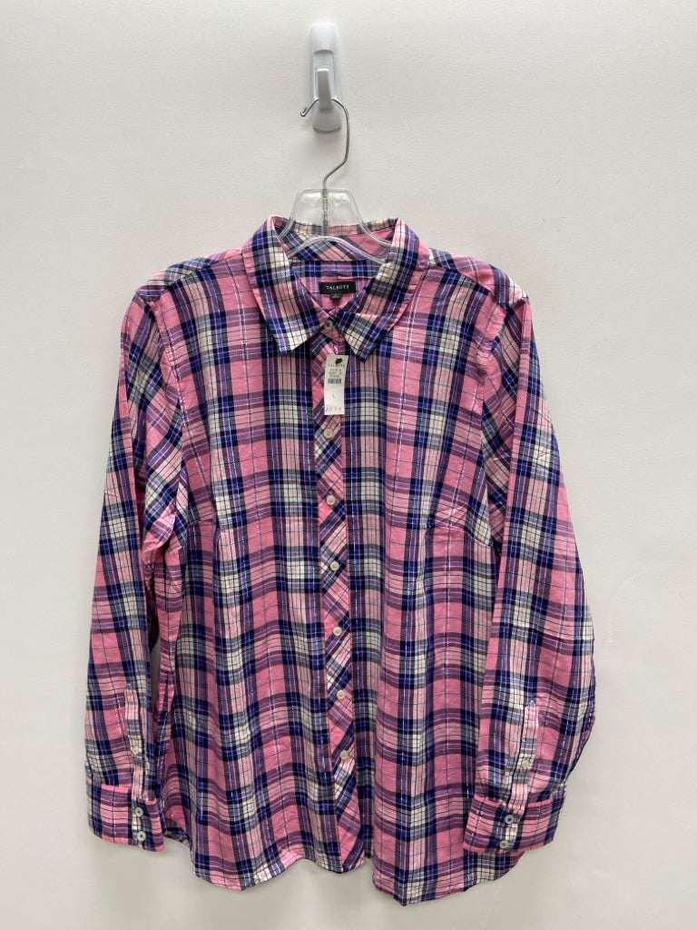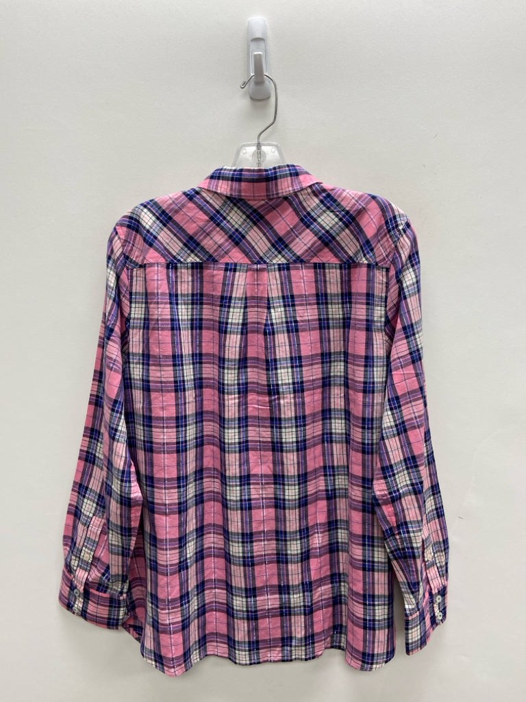 Talbots Size L Pink Silver/Purple Plaid Button Up Ladies Top