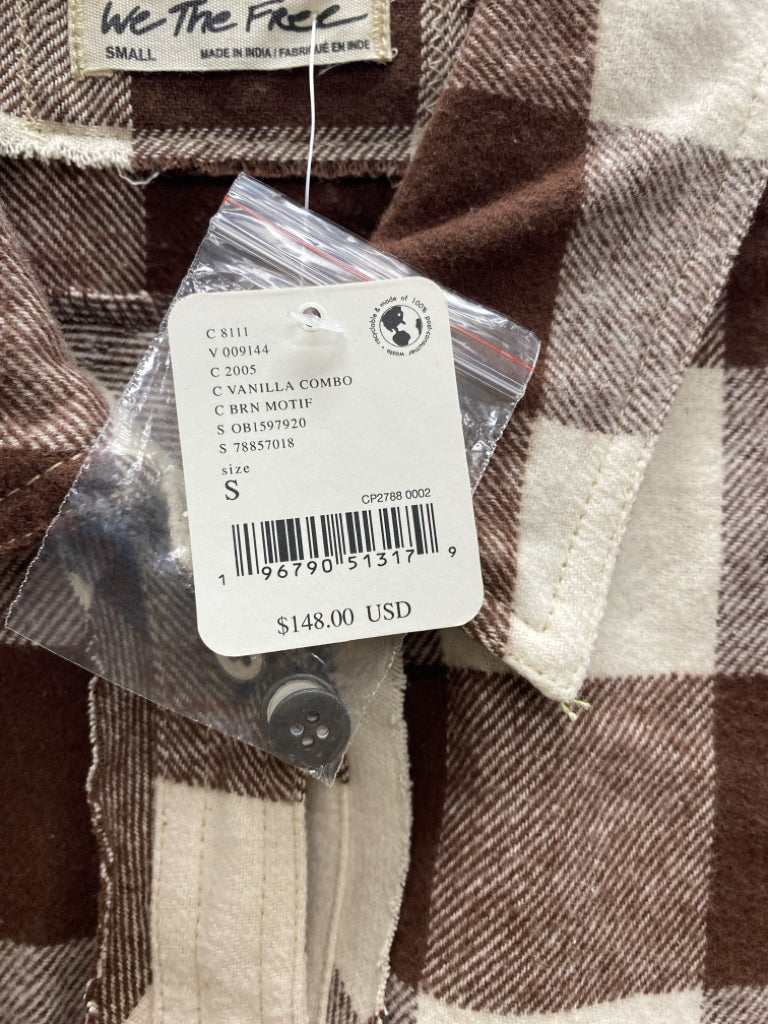 We The Free Size S Brown/Cream Buffalo Check Button Up Flannel Ladies Top