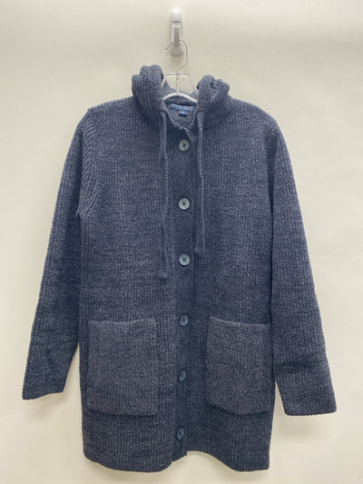 Barefoot Dreams Size S Slate Blue Heather Ribbed Button Up Hooded Ladies Sweater