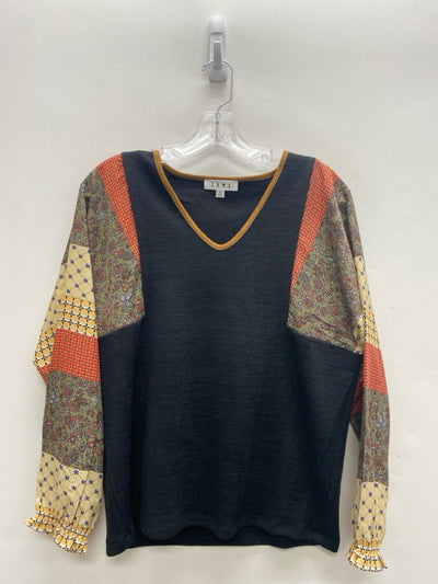 THML Size S Black/Green Coral/Tan Ribbed V Neck Ladies Top