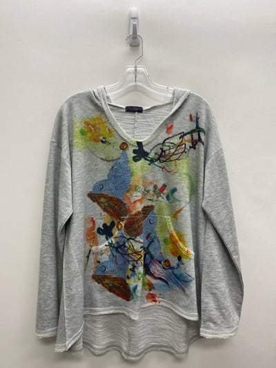 Inoah Size S Gray Multi Color Abstract Hooded Ladies Top
