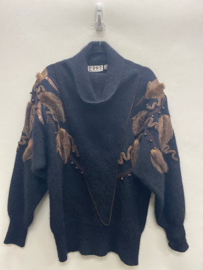 Size S Black Brown Mock Neck Angora Ladies Sweater