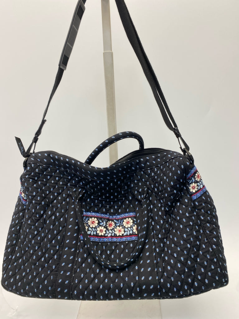Vera Bradley Black/Cream Blue Flowers Duffle Bag