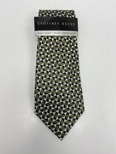 Geoffrey Beene Olive Green Black/Silver Print Men's Necktie
