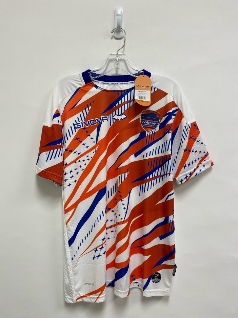 NWT Size L White Orange/Blue Print Men's Athletic Shirt