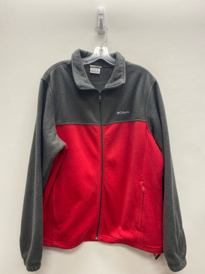 Columbia Size L Gray Red Zip Down Fleece Men's Jacket