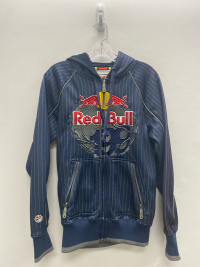 Fox Motocross Size S Navy/Gray Red/Yellow Striped Button Up Hooded Men's Jacket