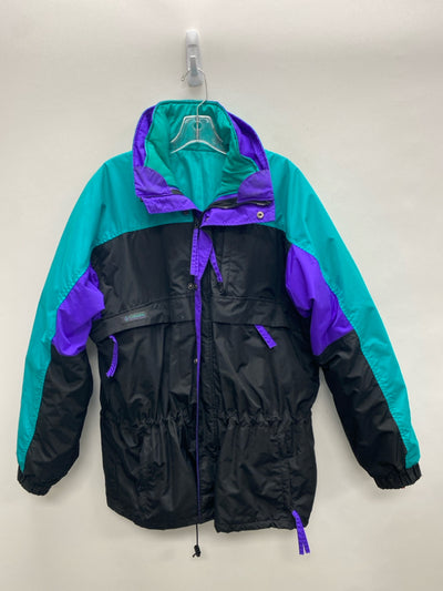 Columbia Size M Aqua Black/Purple Color Block Zip Down Men's Coat