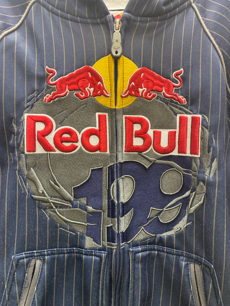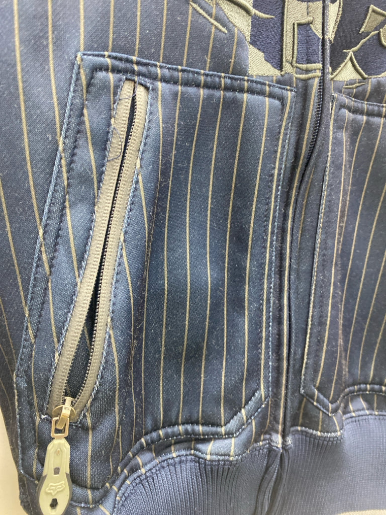 Fox Motocross Size S Navy/Gray Red/Yellow Striped Button Up Hooded Men's Jacket
