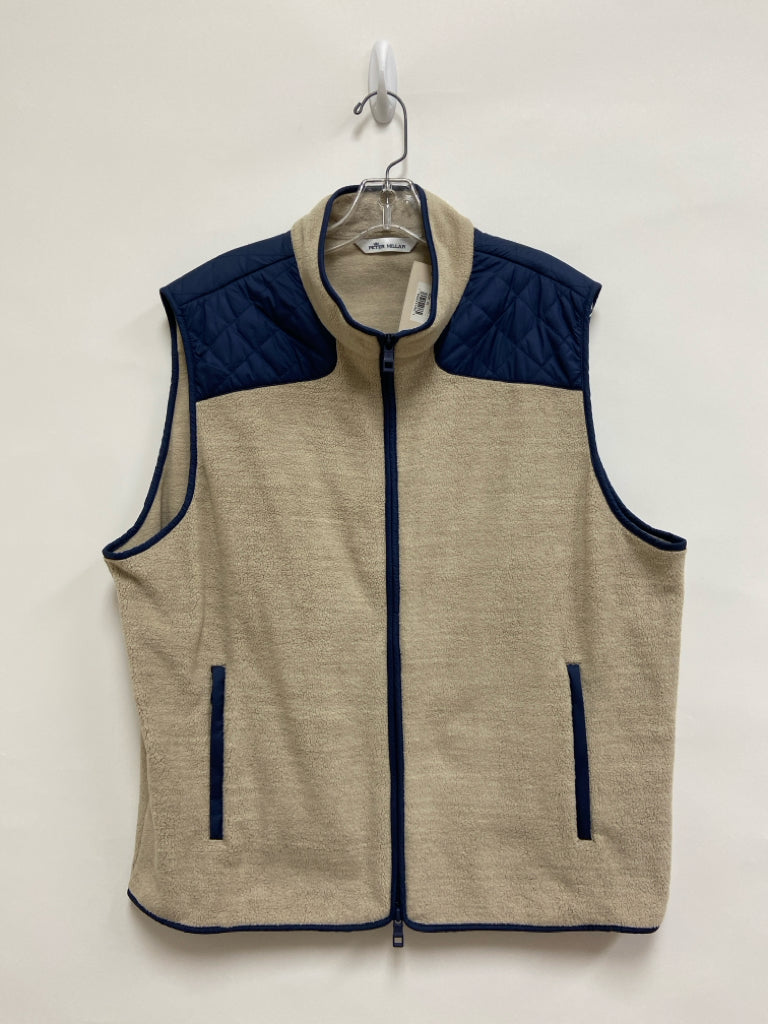 Peter Millar Size XL Beige Navy Trimmed Zip Down Men's Vest