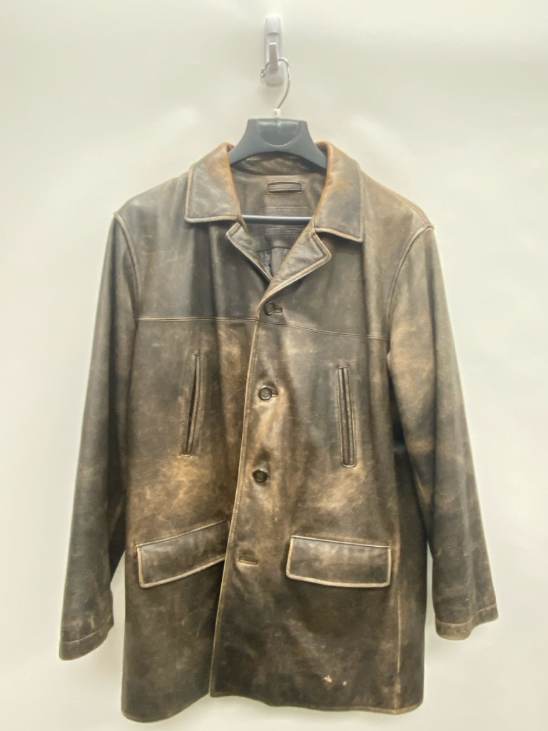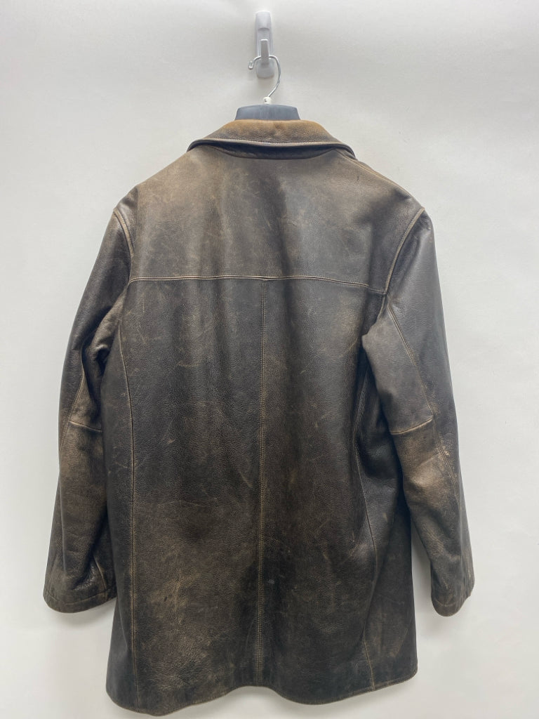 Roundtree & Yorke Size L Brown Tan Button Up Leather Men's Coat