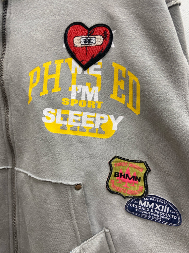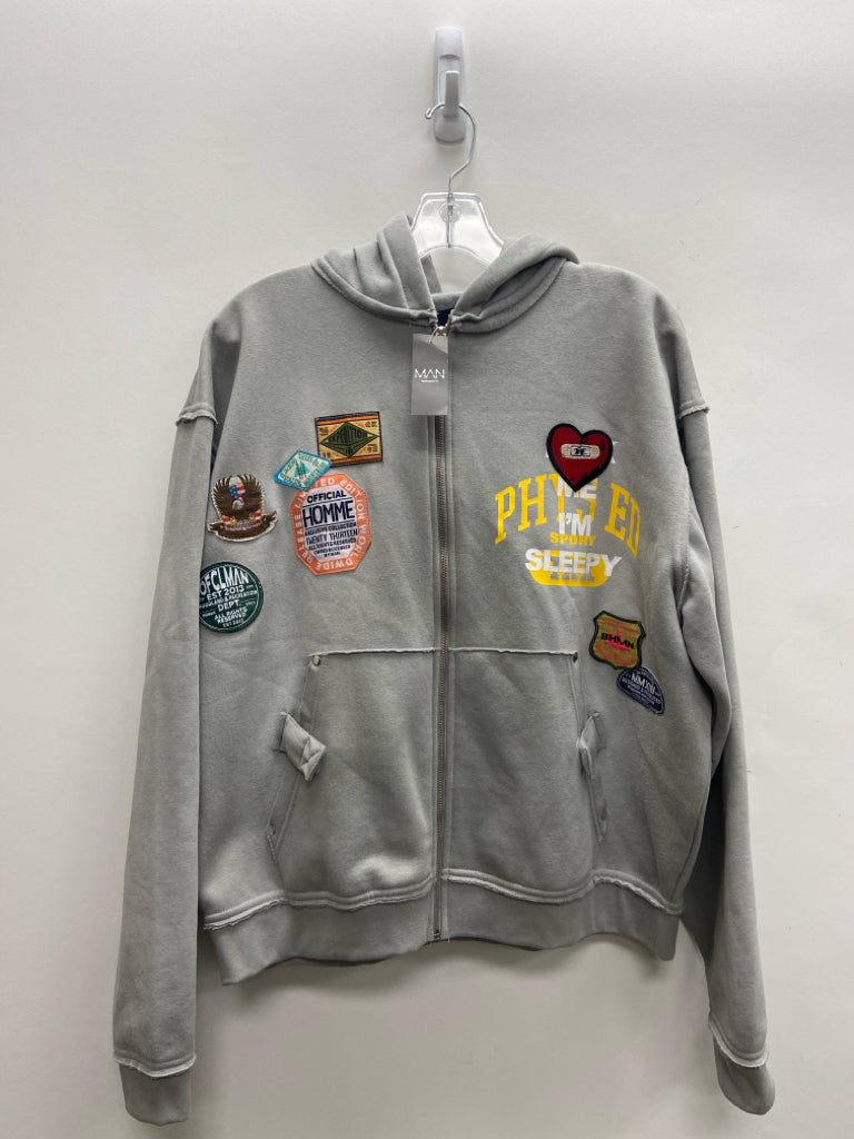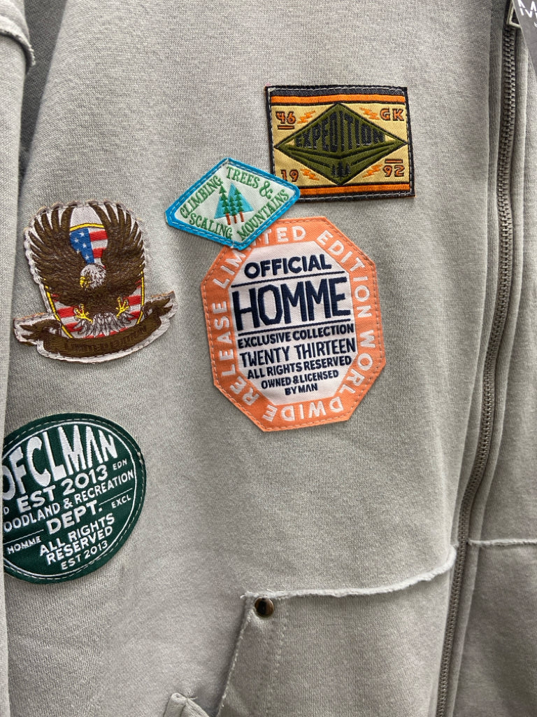 Size S Gray Patches Zip Down Hooded Men's Jacket