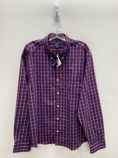 J Crew Size XXL Navy Burgundy/White Checkered Button Up Men's Long Sleeve Shirt