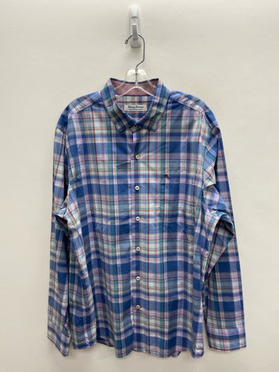 Tommy Bahama Size XXL Blue Button Up Silk Blend Men's Long Sleeve Shirt