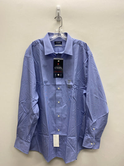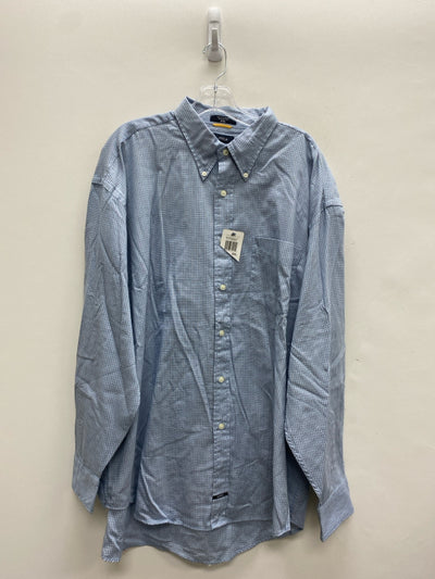 Chaps Size 2X Blue/White Houndstooth Button Up Men's Long Sleeve Shirt