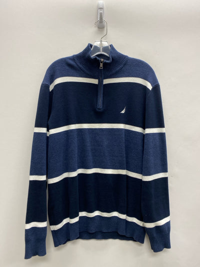 Nautica Size L Navy White Striped Quarter Zip Men's Sweater