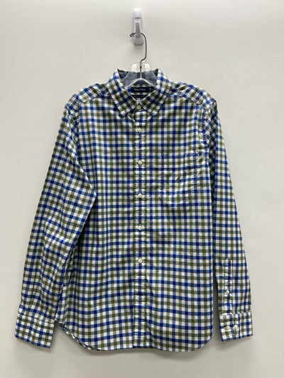Nautica Size M White/Blue Olive Green Checkered Men's Long Sleeve Shirt