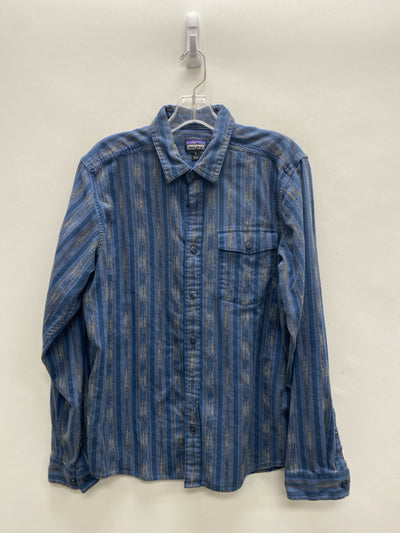 Patagonia Size M Navy Orange/Cream Stripes Flannel Men's Long Sleeve Shirt
