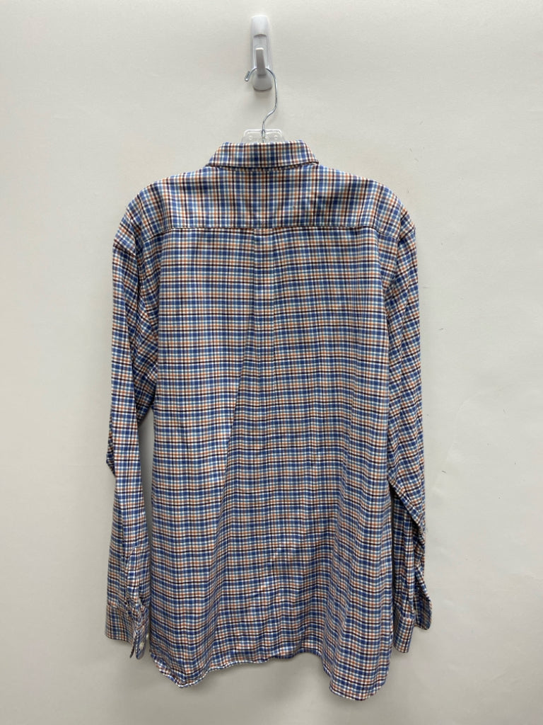 Alan Paine Size XL Blue/Cream Burgundy/Tan Checkered Men's Long Sleeve Shirt