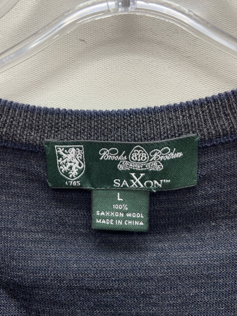 Brooks Brothers Size L Navy Charcoal Striped V Neck Men's Sweater Vest