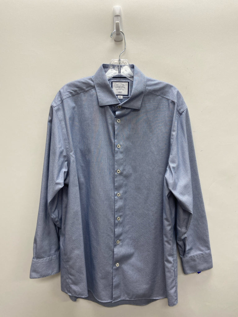 Charles Tyrwhitt Size 17 Blue Navy/White Button Up Men's Long Sleeve Shirt