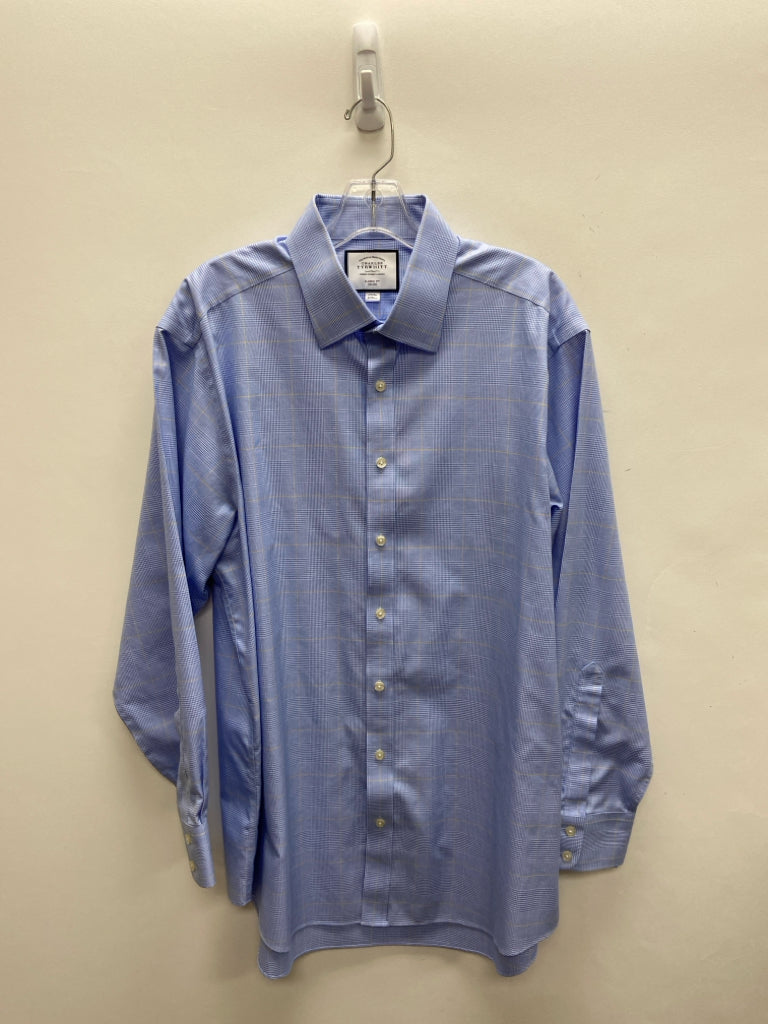 Charles Tyrwhitt Size 17 Blue White/Yellow Button Up Men's Long Sleeve Shirt