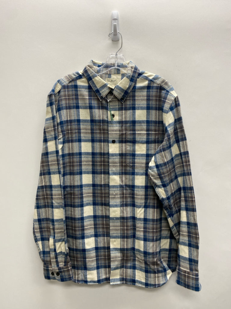 L L Bean Size L Beige Blue/Brown Plaid Button Up Men's Long Sleeve Shirt