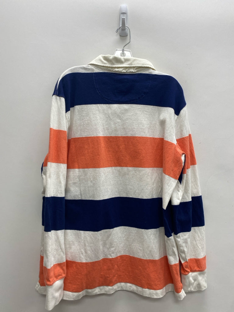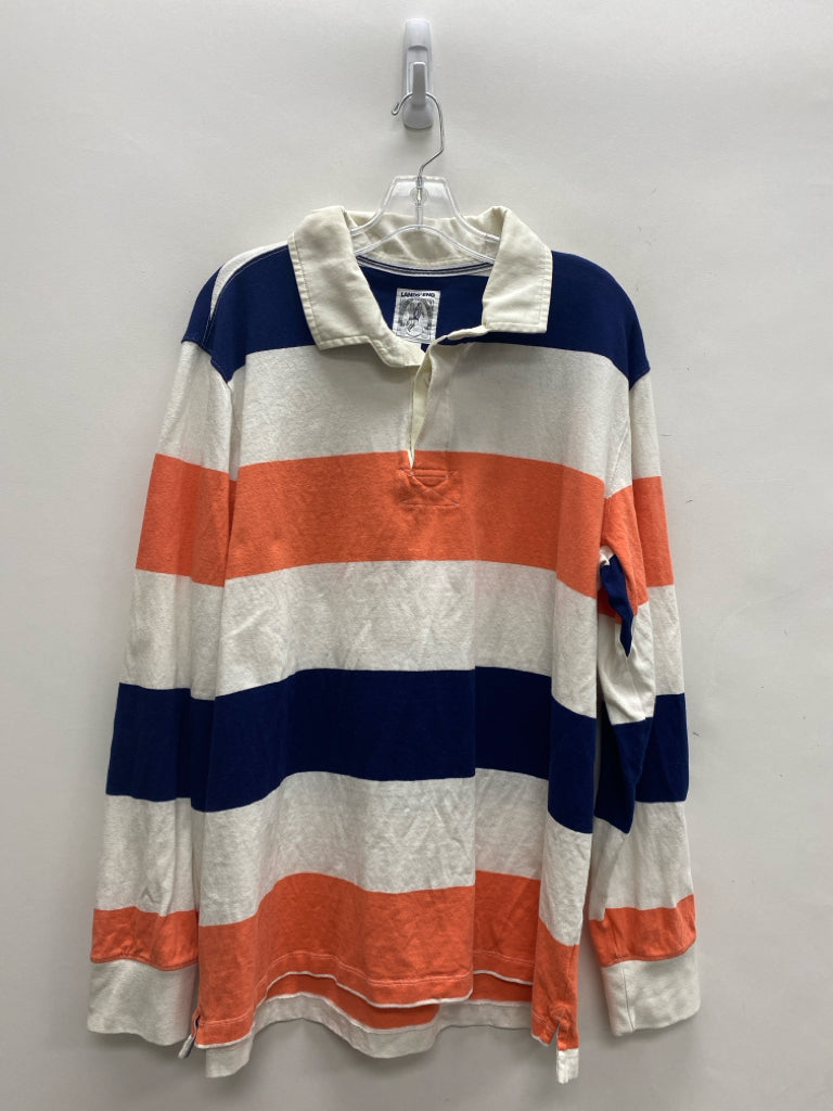 Lands End Size XL Navy White/Orange Striped Button Up Men's Long Sleeve Shirt