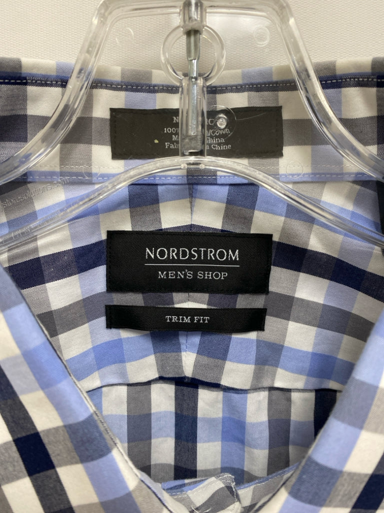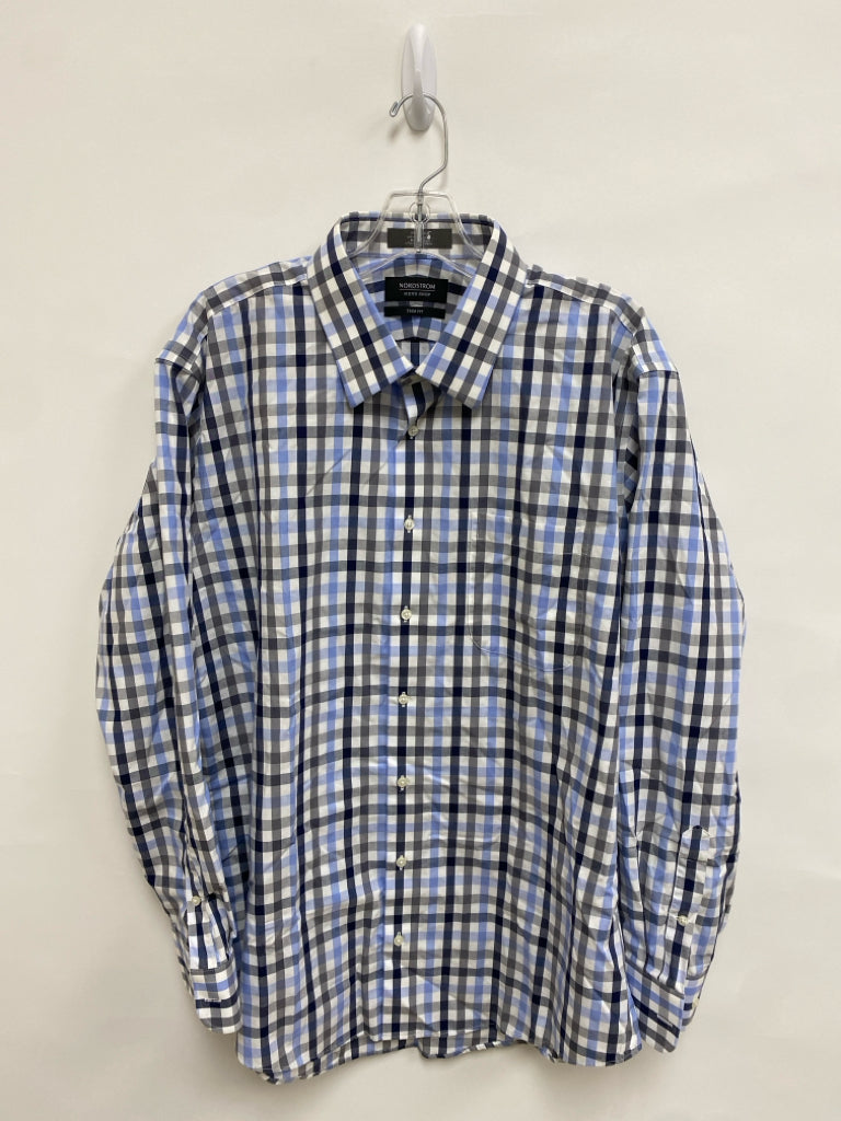 Nordstrom Size 17.5 Blue Gray/White Checkered Button Up Men's Long Sleeve Shirt