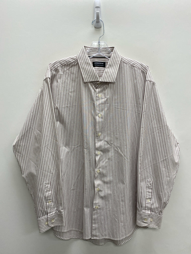 Nordstrom Size 17.5 White Burgundy Striped Button Up Men's Long Sleeve Shirt