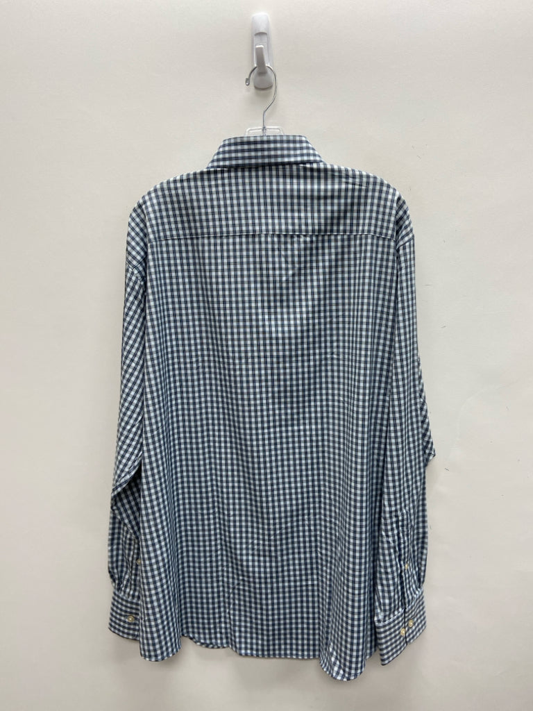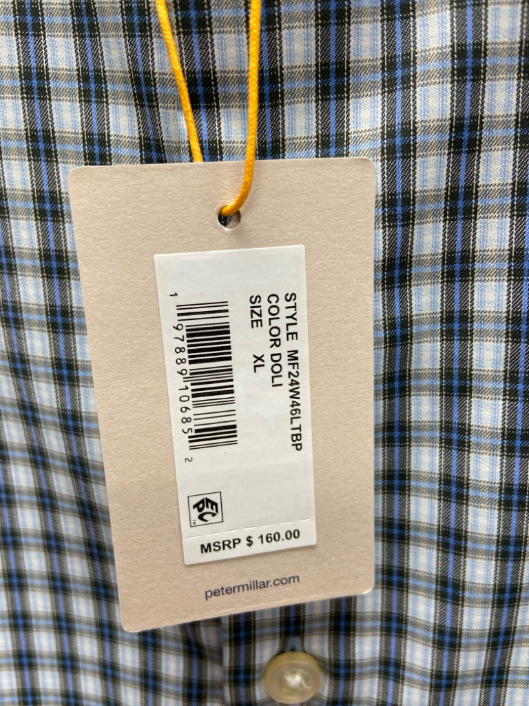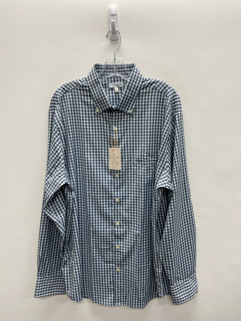 Peter Millar Size XL White Black/Blue Plaid Button Up Men's Long Sleeve Shirt