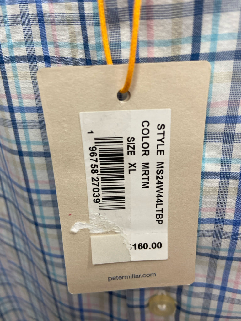 Peter Millar Size XL White Pastels Squares Button Up Men's Long Sleeve Shirt