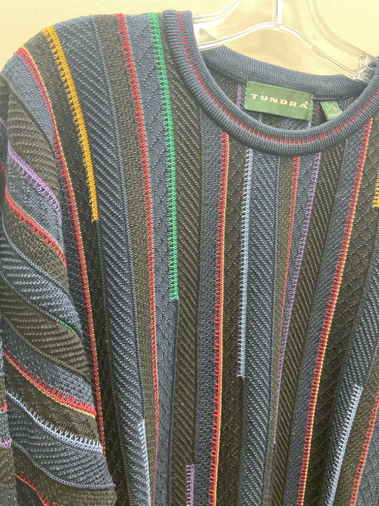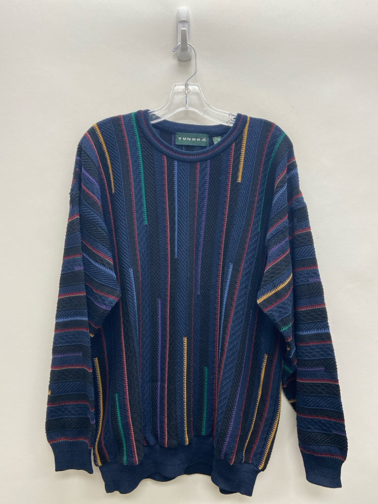 Size L Navy/Black Burgundy/Multi Striped Men's Sweater