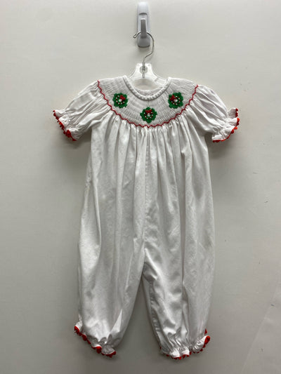 stitchy fish SIZE 18M White Red/Green Smocking Girl's 1pc