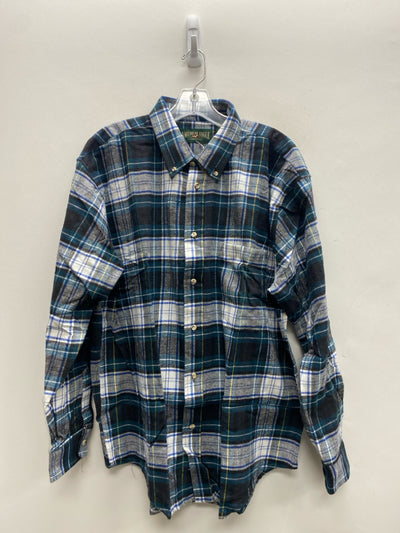 American Eagle Size XL Teal Blue White/Black Plaid Men's Long Sleeve Shirt