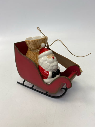 Mudpie Red/White Tan Santa Metal/Ceramic Christmas
