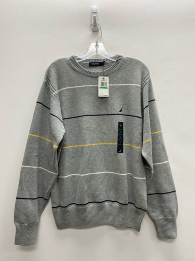 Nautica Size L Gray Navy/Yellow Striped Men's Sweater