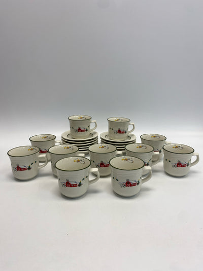 Pfaltzgraff White Green/Multi Christmas Cup/Saucer
