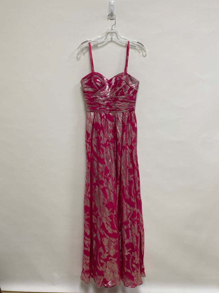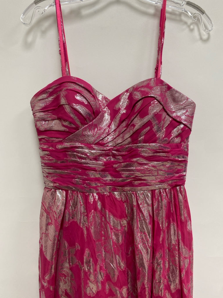 AIDAN MATTOX Size 6 Fuschia Silver Strapless Silk Ladies Formal Dress