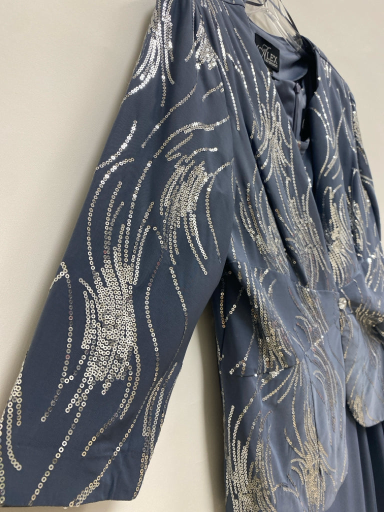 ALEX EVENINGS Size 12 Slate Blue Silver Sequins Ladies 2pc Formal Dress