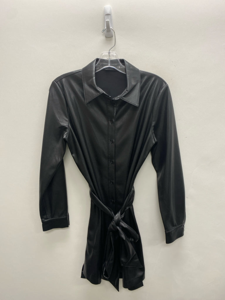 Alice + Olivia Size M Black Button Up Faux Leather Ladies Dress